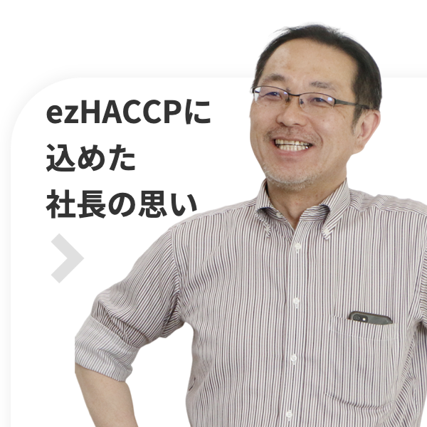 このたび「ezHACCP」が私たちのような特殊な業界に対応していただけると聞き、早速相談させていただきました。クラウド化に関してはわからないことも多く初めは不安でしたが、担当の方に現場にも足を運んでいただき、また説明もわかりやすく、安心してお任せすることができました。